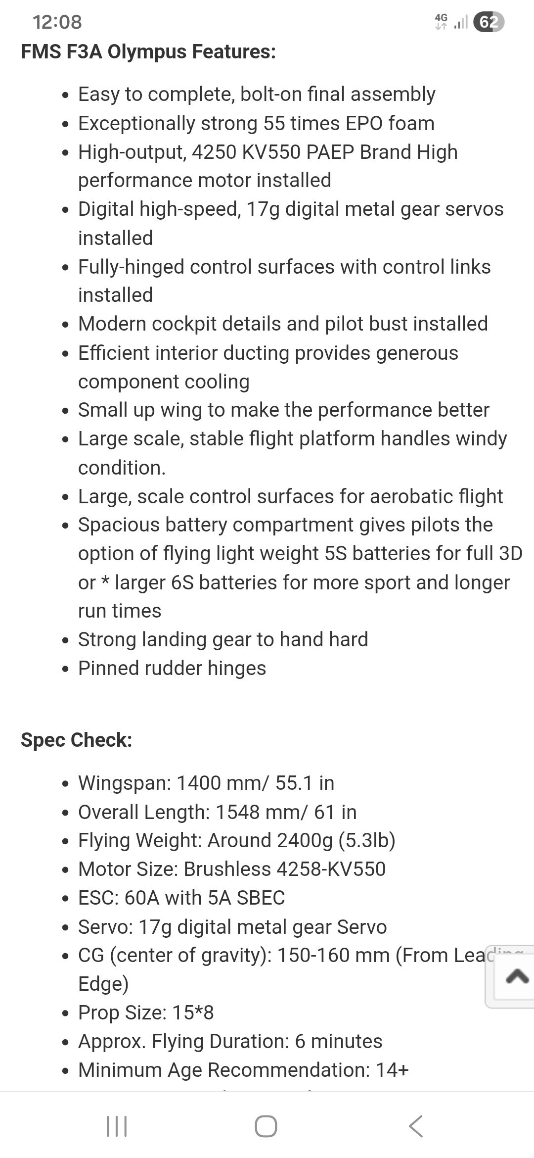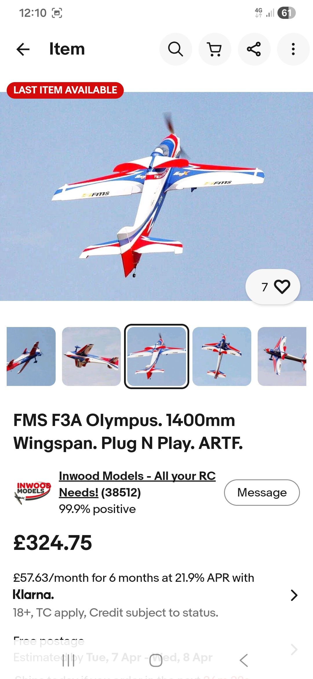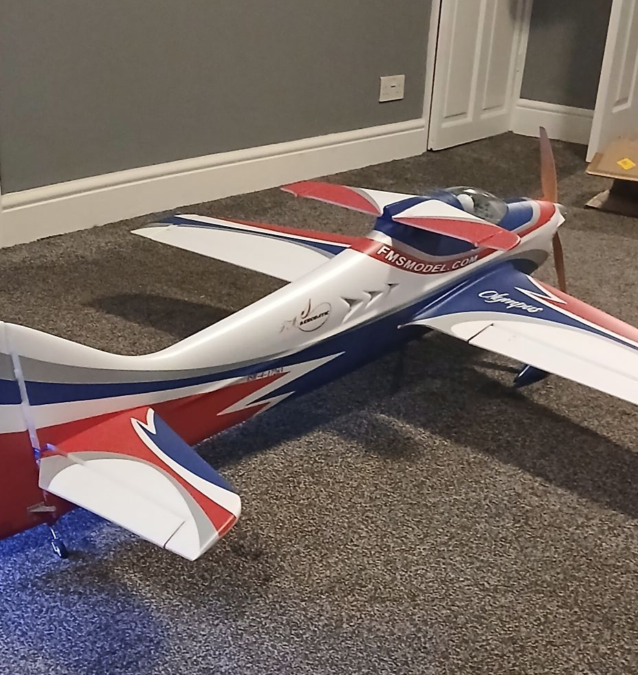 Below is an FMS F3A Olympus being sold by Mike Grey, not a club member. The model comes as Plug and Play, only need to add a receiver and your own transmitter, two batteries included. Mike would like £200 for this model.
